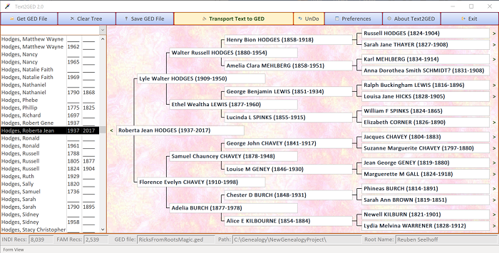The tool I've developed, Text2GED, enables me to gather your genealogical information a whole lot quicker than if you or I had to type out all the names, dates, places, and relationships ourselves by hand! That's why my fees are so low.